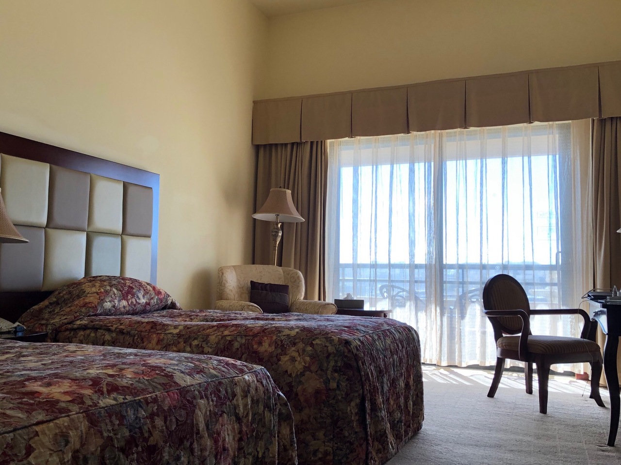 IHG会員だったのでジムやサウナを無料で利用できました。部屋はツインで予約していましたがセミダブルのベッド2つ、設備はやや古いですが、清掃が行き届いていて清潔で快適でした。
