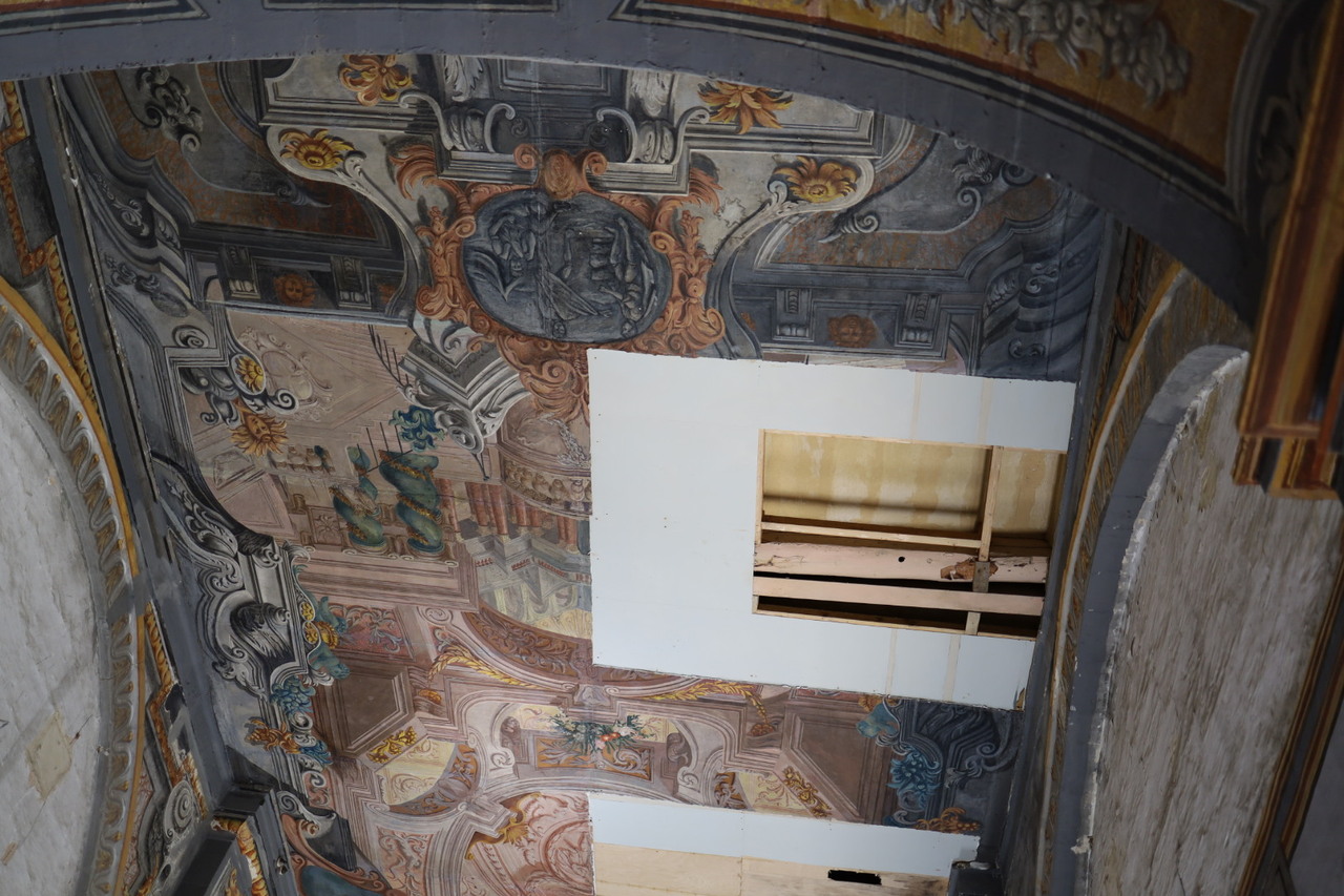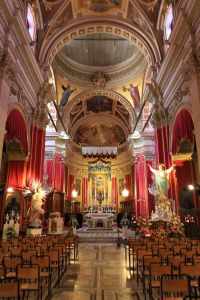 改装したばかりの真新しい石造りで、教会内部の絵画は修復中でした。有名な?だまし絵は見られませんでした。
