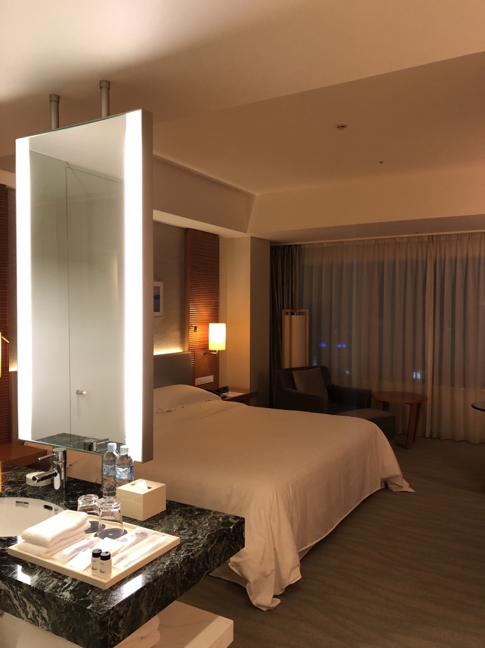 部屋はキングサイズのデラックスルームにしてもらえました。見るからにゴージャスですが、風呂入って寝るだけだったのでもったいなかったかも…