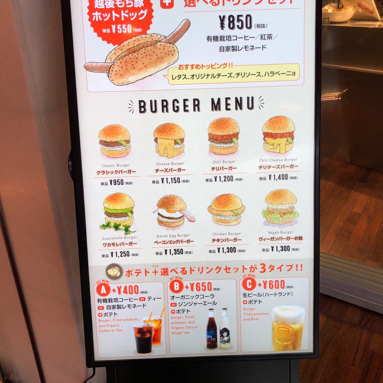 自由が丘バーガー羽田店でチーズバーガー Aセット(ドリンクとポテト)を注文、税込1674円、高いです。