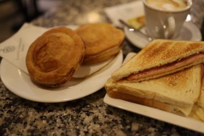 リコッタチーズをパイ生地に包んで焼いたパスティッツィ、ハムとチーズのトースト、カプチーノをいただきました。