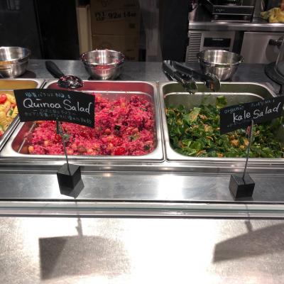 このセットは飲み物とサラダ2種類を選べるのですが、豆乳ラテ、ケールのサラダ、キアヌのサラダにしました。ケールのサラダにはクルミが入っていて食べごたえがあります。キアヌのサラダはカレー風味の味付けが意外と合います。ラザニアは言われなければ本物の肉が使われていると思ってしまいますが、ビーガン向けなんだそうです。