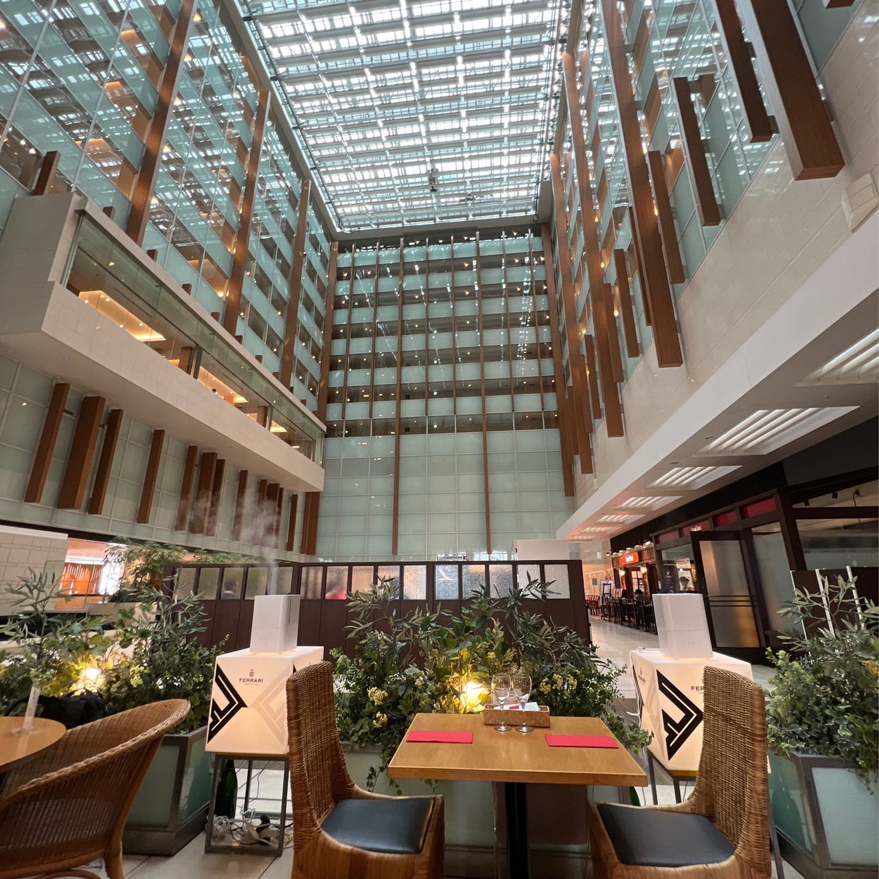 新横浜駅ビル キュービックプラザ新横浜10Fのレストラン街には大きな吹き抜けのある空間があるのですが、その一角にイタリアンレストランのアマルフィイ ノベッロがあります。