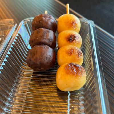 みたらし団子が美味しそうだったので1本買って公園でいただきました (ご主人、1本だけでゴメンね)。- 旅行時期