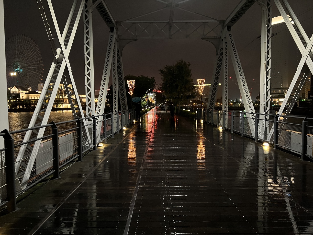 ランドマークタワーは雨に煙って、てっぺんは見えない。