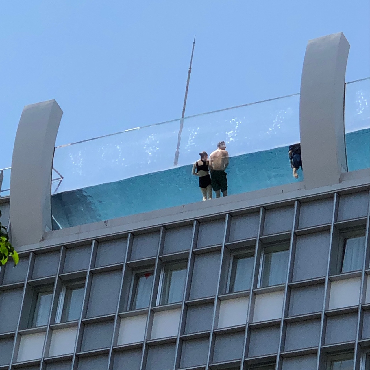 このホテルは屋上にシースルーのプールがあり、訪れた9月後半はまだまだ泳げる時期でした。でも…水着忘れた!