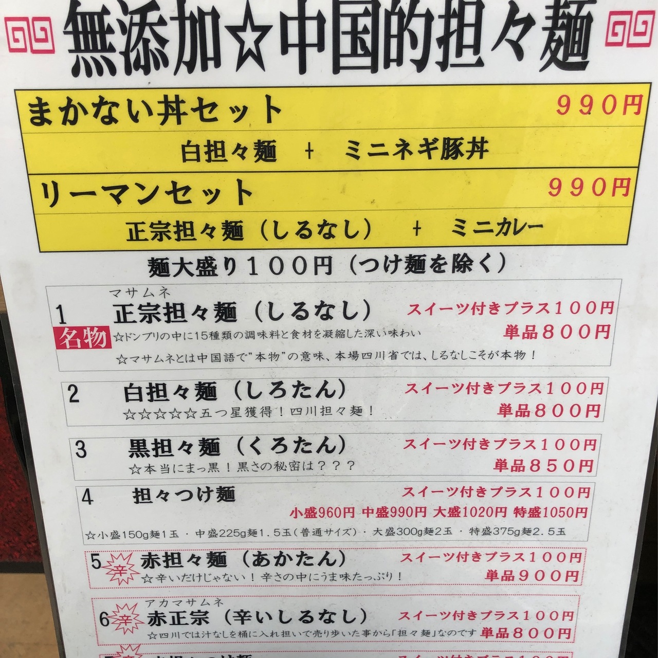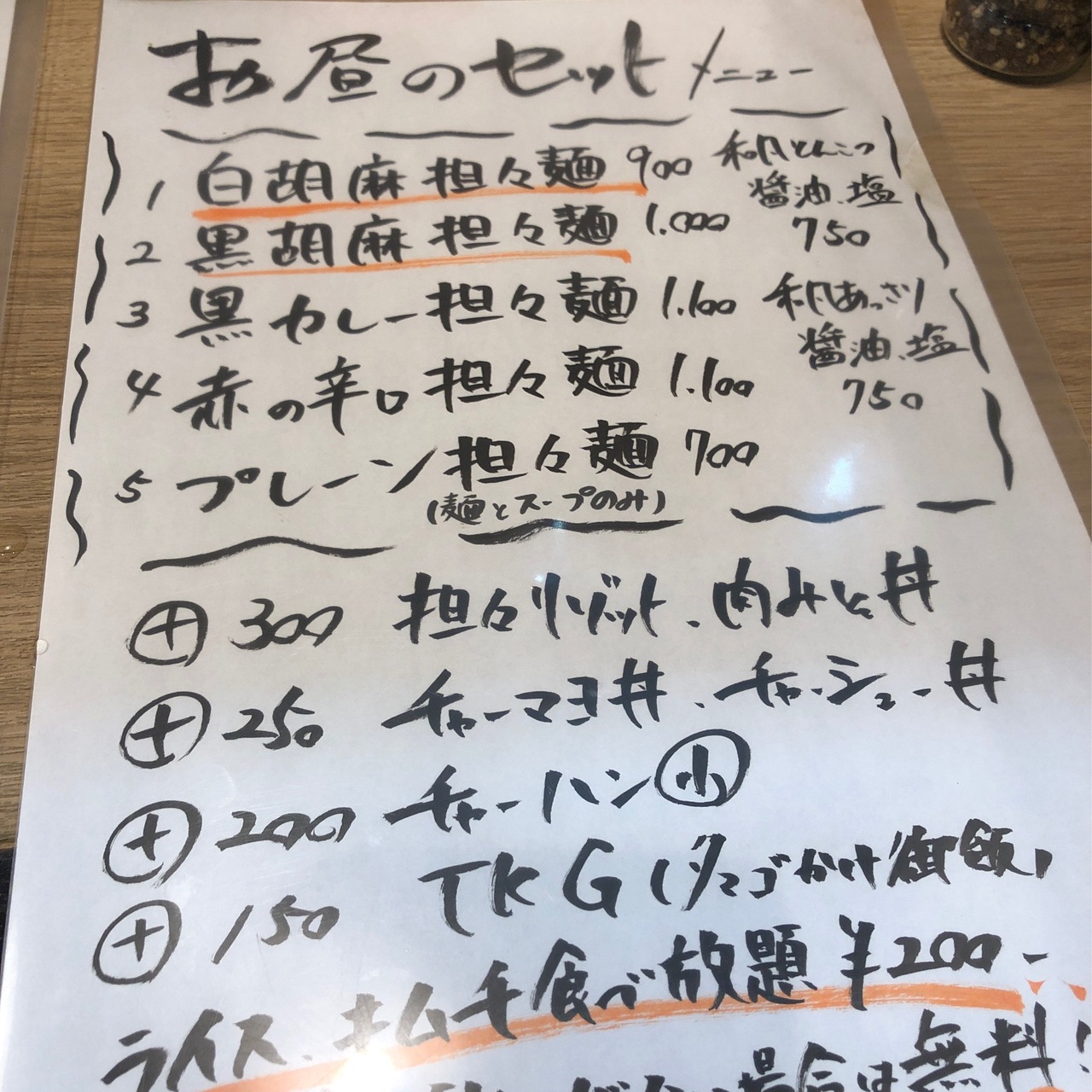 醤油ラーメンも提供されていますが、このお店の売りは坦々麺だと思う。初来店だったので、定番と思しき白胡麻坦々麺を注文しました。