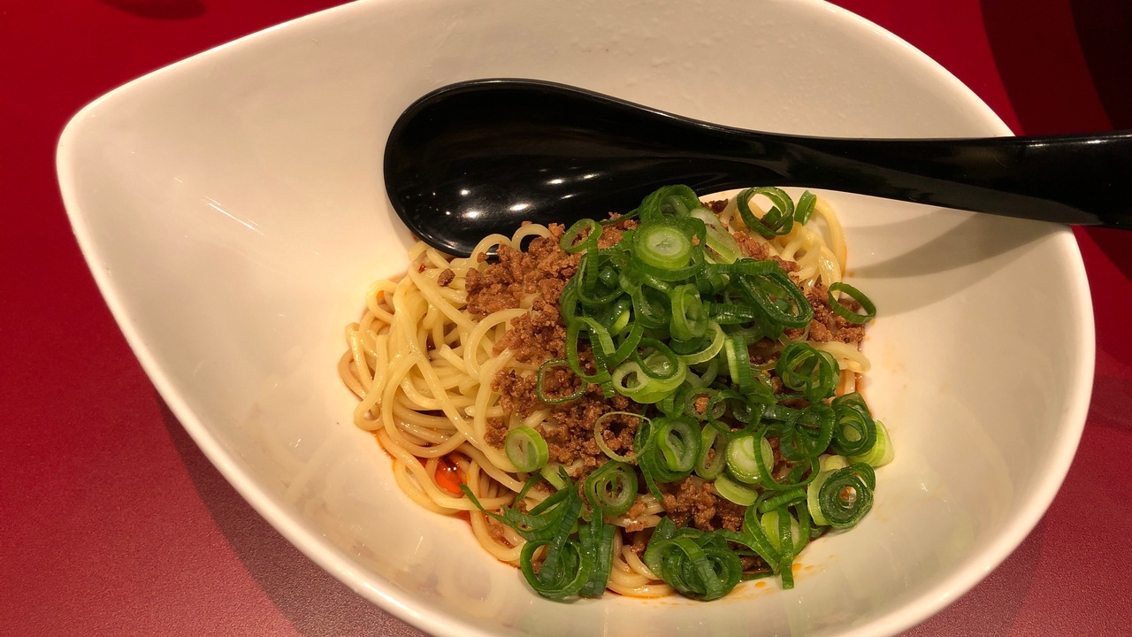お昼のおすすめメニューは何と言っても担々麺! 正宗、白、黒、赤、つけ麺と種類が豊富、辛さも選べます。名物の正宗(汁なし)を選びました。これは美味い。人気があるのも納得です。