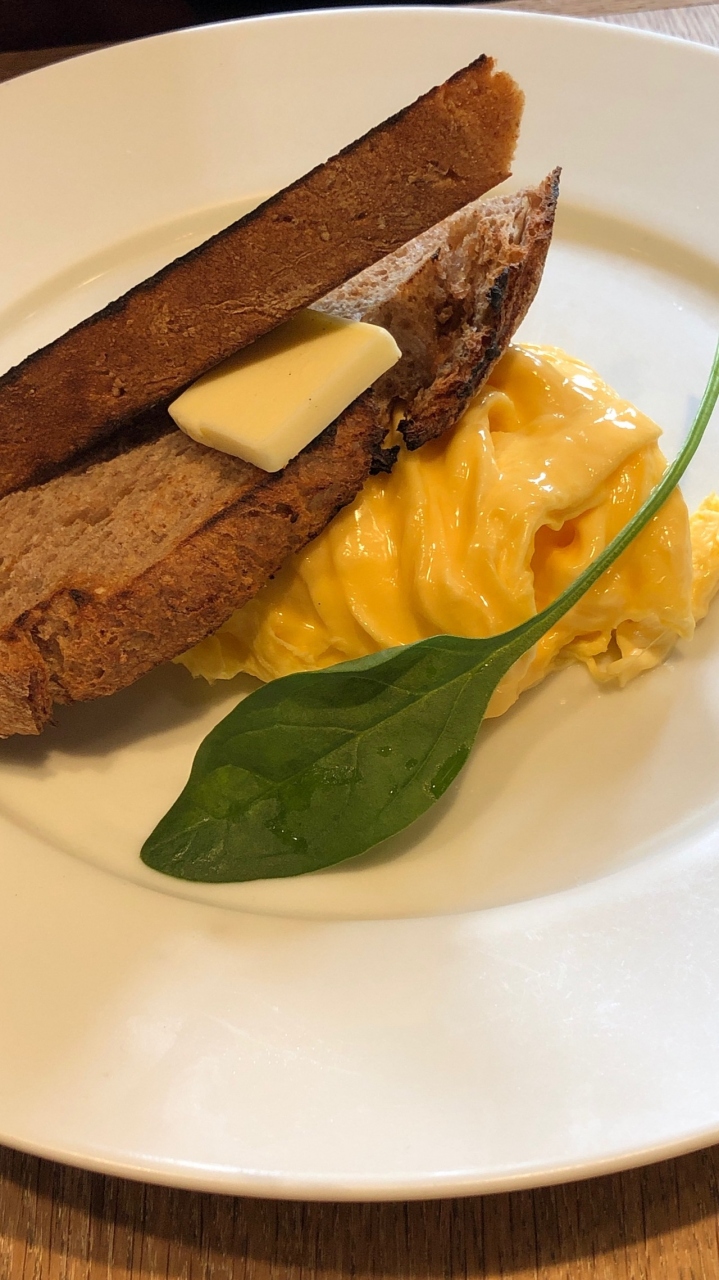 スクランブルエッグはそれ自体も美味しいですが、付いていたパンが意外にも美味しかった。