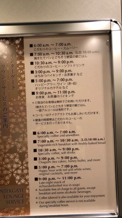 フロントのすぐ近くにラウンジを配し、時刻に応じてコーヒーやワイン、お茶漬けなどを提供しているのが特徴的ですが、今回は仕事の都合でこのサービスを受けられなかったのが大変残念でした。