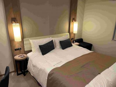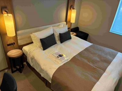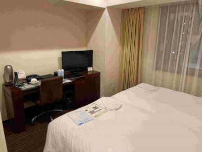 なるべく広い部屋がほしかったので、コーナーツイン32.2平米を予約しました。たしかに広い部屋でしたが、窓が妙に湾曲していて、それほど広く感じません。しかも外が全部高い建物で、厚いカーテンを開けられませんでした。