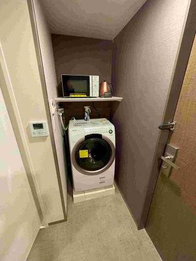 部屋には洗濯機と電子レンジがありました。各フロアーにあるのは見たことありますが、部屋の中にあるのは初めてです。