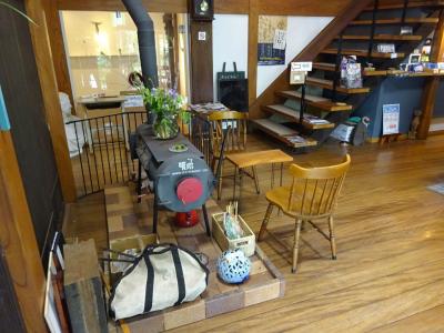 入口にでーんと構える薪ストーブは、プロパンガスのボンベを改造した物だそうです。東日本大震災のとき現地でたくさん作られ、大活躍したとうかがいました。