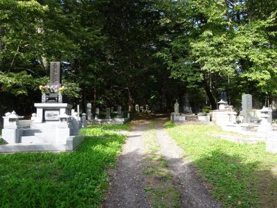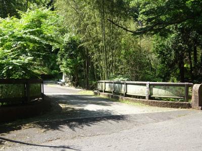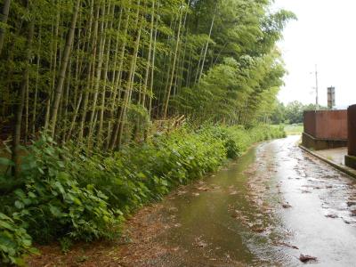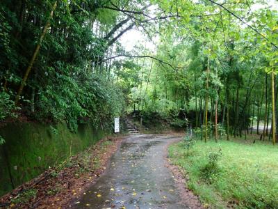 遺跡表示の右に、車のすれ違いがやっと可能のような道路がありました。旧居跡近くまで舗装はされていました。かなりの急坂です。