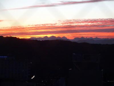 窓は6階の西向きですから、夕焼けの北アルプスが見渡せました。小諸の夜景もきれいでした。浅間に向いた部屋もあるそうです。