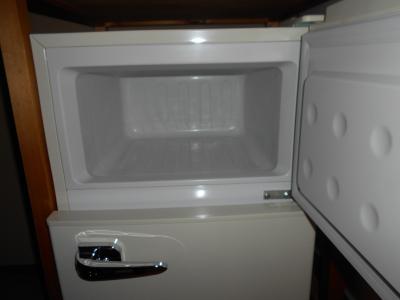 冷凍庫つき冷蔵庫というのは初めてです。保冷バックをもって旅行するので、冷却剤を凍らせるのに便利でした。1週間くらいの長期滞在もできそうです。
