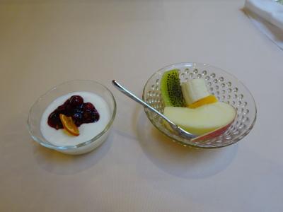 朝食は和、洋、和洋ミックスから選べました。デザート、コーヒーまでしずしずとサービスされました。