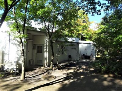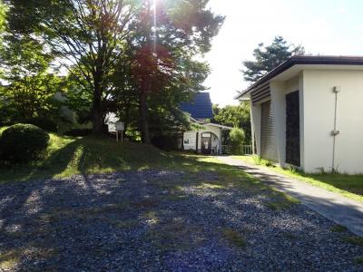 駐車場は玄関わきに10台分くらいありました。ほかにもあるそうです。事前に電話しておきましたが、10時にここに車をおいて、軽井沢を歩きました。いわゆる旧軽銀座に面していますから、旧軽の散歩には最適です。