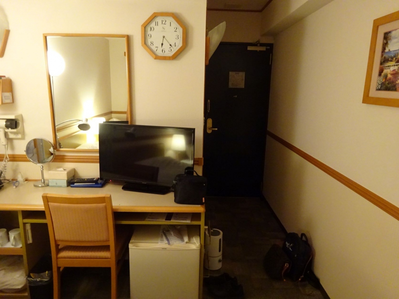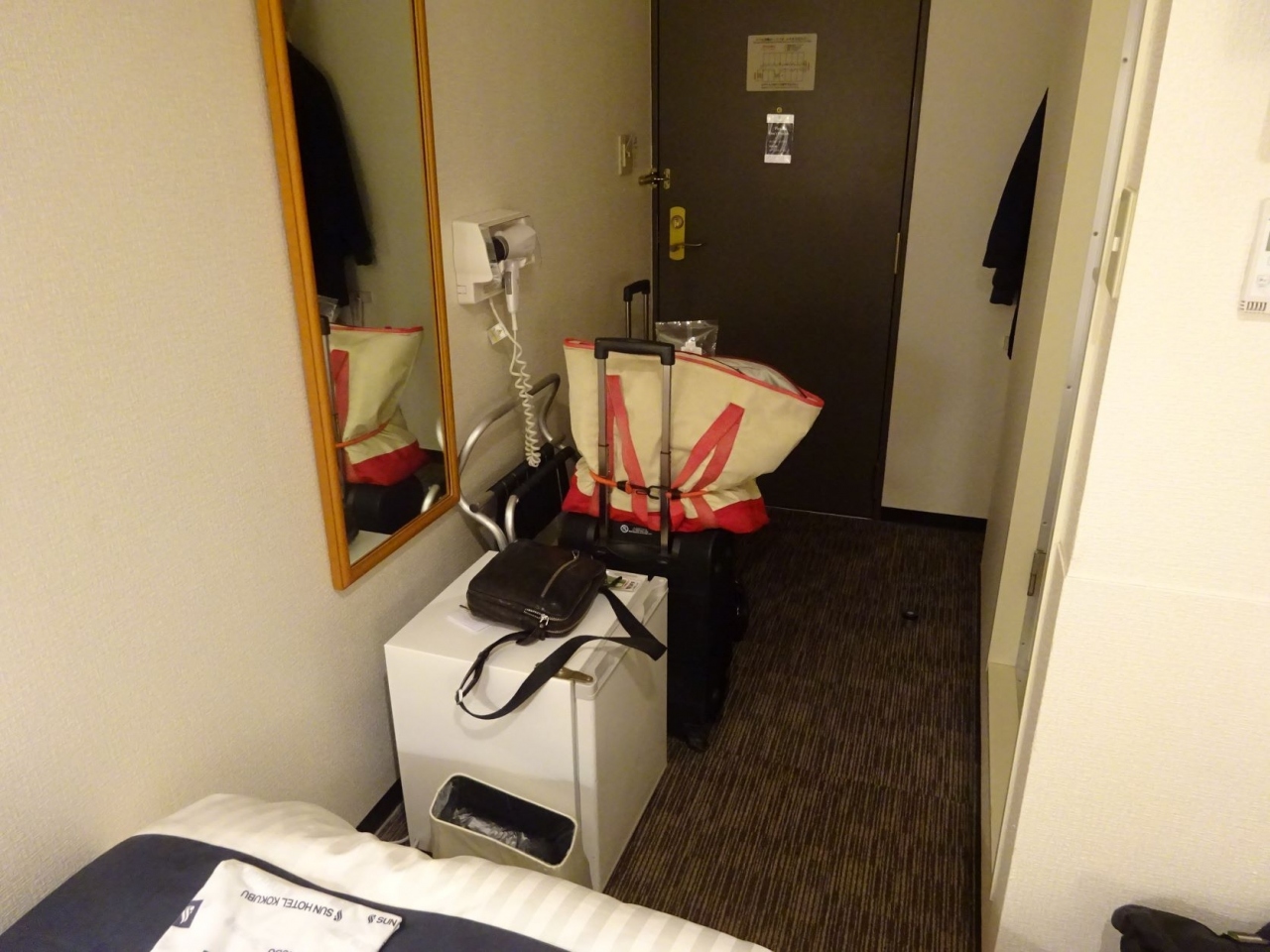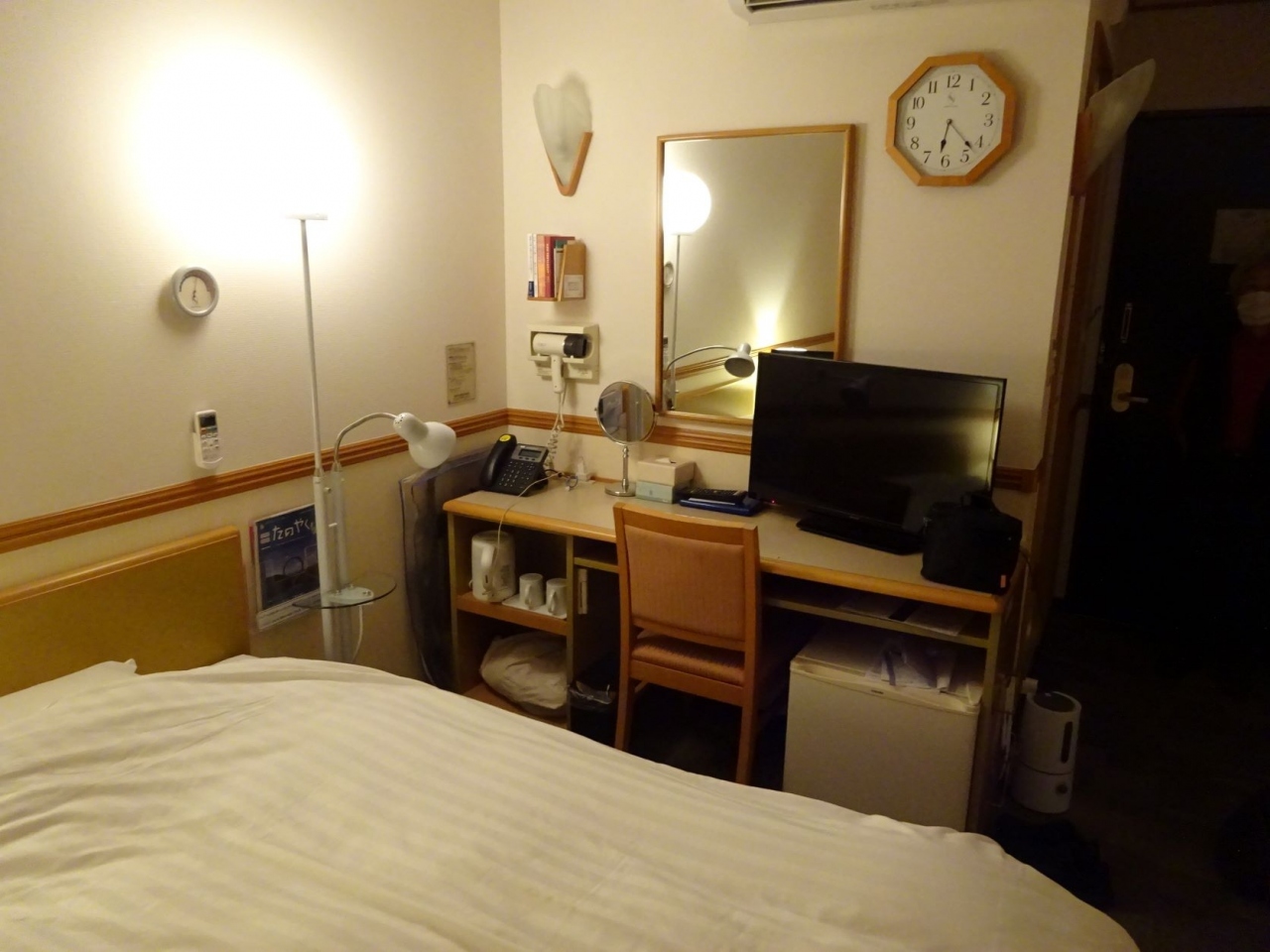 ツインには無理な面積です。本来ダブルでしょうね。ベッドの間は2人がすれ違うのが難しいくらい。向かい合わせだと、2人のお腹がぶつかって通れません。ハイハイ、ここまでデブった当方が悪いのです。ホテルのせいではありません。