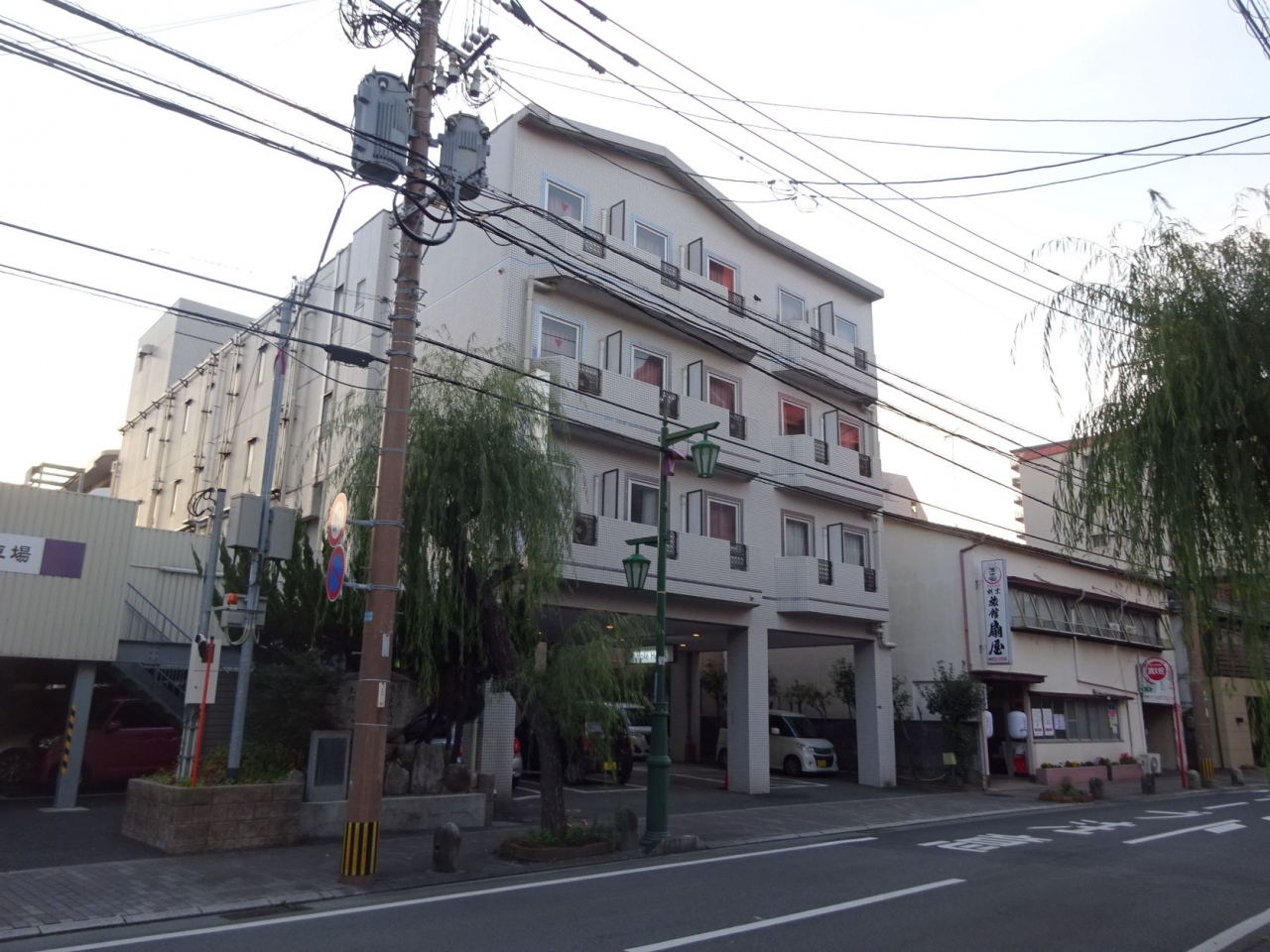 ホテルの近くには「千と千尋」にでてくるような、3階建て、提灯を並べた公衆温泉が2軒ありました。
