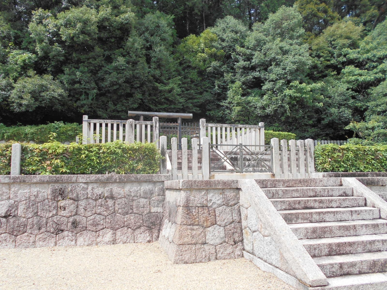 陵正面の道路が広かったので路上駐車ました。この道路はこの先にテニスクラブがあり、行き止まりのようです。- 旅行時期