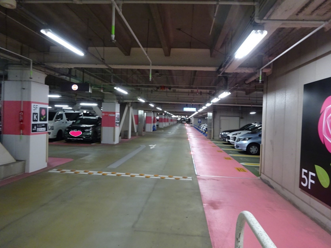 専用入り口で入庫。チケットを受け取って、メールの指示に従い5F予約専用フロアーまでぐるぐるあがりました。