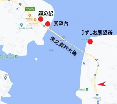 黒之瀬戸を見るには、黒之瀬戸大橋の九州本土川、橋の右端のうずしお展望所が最適です。10台くらいとめられる駐車場があります。県道389からの下り口がちょっと分かりにくい。