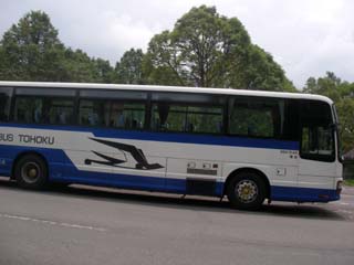 新青森駅から駅前のロータリーにあるバス停で待っていると、青森発のJRバスの八甲田、十和田方面行きのみずうみ6号がやってきました。このバスはバス指定券をみどりの窓口で売っていて、事前に購入して、運転手に見せて乗車します。