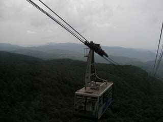 ロープウェイの後ろに乗って出発するとすぐに展望が開けて、高曇りで周囲の山が見えていて、遠くに薄っすら青森湾が見えています。中間点で上から降りてくるロープウェイと交換して、10分ほどで標高差650mの山頂公園駅に到着しました。- 旅行時期