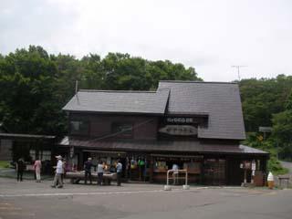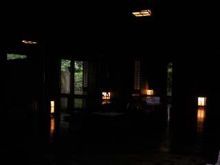 大岳の登山口の自動車道に出ると小雨が降ってきて、少し先にある酸ヶ湯温泉の建物に向かうと2階の入口で、中に入って階段を下ると売店に出ると雨が本降りになっていました。建物の入口にある券売機には、混浴ヒバ千人風呂(600円)、男女別の玉の湯(600円)、両方に入れて広間休憩付き(1,000円)があり、有名なヒバ千人風呂の券を買って、フロントで青森行きのバスの時刻を確認して、ロビーを進むと、鍵付の貴重品ボックスがあり、その先の入口の箱に券を入れる方式です。