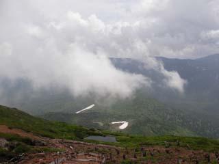 酸ヶ湯温泉といえば豪雪地帯として有名でアメダスの最高積雪を記録しますが、通年営業していて冬場は、湯治客だけでなくスキー客も来くるところです。湯上りに外に出ると雨が上がって、酸ヶ湯温泉の建物の上に先ほど通ってきた大岳が姿を現しました。- 旅行時期