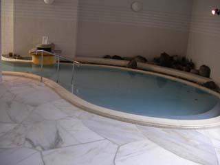 玄関を入るとフロントがあり、温泉博士7月号を見せると日帰り入浴料金500円が無料になり、脱衣場にロッカーがないので、フロントで貴重品を預けます。まだ宿泊客が到着しないので館内は静かで、廊下の先に大浴場があり、脱衣場に籠が並んでいて、ウォータークーラーがあり暑いので水分補給して、明るい浴室に入ると、ひょうたん形の湯船があり、温泉は無色透明です。洗い場は一段上にあり、先客がいましたが、静かです。温泉はやや熱めで、あまり長く入っていられず、脱衣場で水分を補給して、30分ほど温泉に入って、脱衣場の扇風機で涼みました。