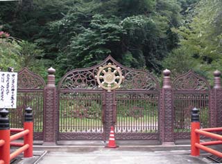 上牧駅で下車して、山の中にある奈女川温泉釈迦の霊泉に向かいます。駅前の県道を水上方面に進むと、釈迦の霊泉・奇跡の御神水と書かれた看板があり、私道を3キロと書いてあり、少し進むと釈迦の霊泉・仏神教教会とかかれた門があり、急な林道をひたすら登ると少し平地があり着いたと思ったら、鉄の柵で囲まれた仏舎利塔で、宗教施設で怪しい雰囲気です。わざわざ登ってここまで来て引返すと後で後悔しそうで温泉が気になるので、さらに急坂を上ると、山奥の温泉宿のような奈女川温泉があり、宗教団体が買い取って拡張したようです。温泉の建物はさらに上で、標高差200メートルを徒歩50分で着きました。