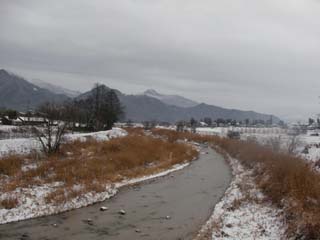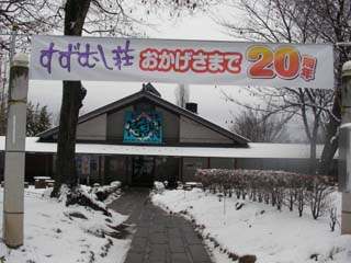 北細野駅から駅前の道を西に進み、国道147線を北上するとコンビニがあり、さらに進むと有明神社の参道の灯篭がある交差点を左折してそのまま道なりに進み橋を渡った先の徒歩30分ぐらいですずむし荘がありました。