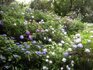小石川植物園の入園料330円は向かい側の商店で券を買って入口で出すと園内の案内地図を渡されます。先ほど下った御殿坂の隣の坂を上っていくと本館があり、アジサイが咲いている道を進むとシダ園の先に柴田記念館が建っています。中に入ると改装されていますが板張り床の古い建物で、研究室の中といった雰囲気で、土産物の絵葉書などを売っています。
