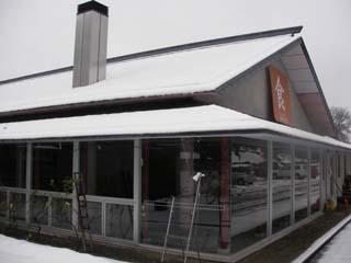 露天風呂は、広い岩風呂で雪を眺めながら温泉に浸かります。露天と源泉水風呂を往復して、地元の人の話を聞いていると、近くの有明温泉から温泉を引く計画もありましたが、配管が成分で腐食するので7年毎に温泉の権利を更新する必要があり、遠くの山から源泉を引くことになったとのことです。
