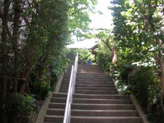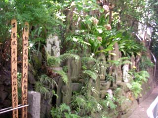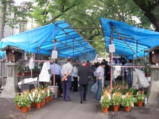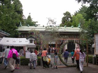 池袋駅の北口から商店街を進んで、下板橋駅の近くに氷川神社があり、参道では朝顔市をやっています。さらに進んで、茅の輪くぐりをして本殿に参拝し、隣にある富士塚に行列が出来ていて7月1日のお山開きのときだけ登れます。