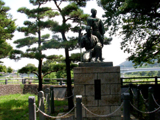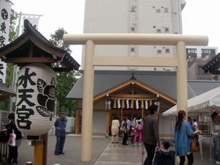 回向院から少し離れた堅川の向こう側にある江島杉山神社に向かいます。住宅地の中にある神社に着くと、江戸時代に鍼灸治療の教育施設を造った杉山検校(杉山和一)が祭られていて、世界最古の障害者教育の場とのことです。今年は生誕400年にあたり、本殿で宝物を公開していて、徳川家から賜った葵の紋入り掛軸や平家琵琶、木像の本尊が公開されていました。