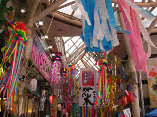 阿佐谷七夕まつりの会場は阿佐ヶ谷駅から丸の内線の新阿佐ヶ谷駅に続く長い曲がりくねったアーケード商店街で、地元の小学生が作った飾りが並んでいます。商店街には、個性のある店が並んでいて、ゆっくり散策しながら楽しみました。