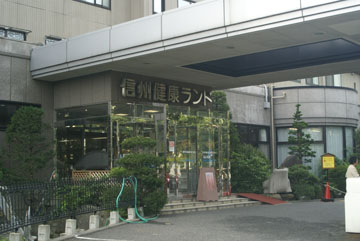 塩尻駅の二つ先の村井駅で下車し、信州健康ランドに向かいます。駅を出て塩尻方面に線路沿いを進み石油精製所の隣を通って、最初の踏切を渡るとビジネスホテル風の建物が見えてきます。ゆっっくり歩いて徒歩10分ぐらいでしょうか。