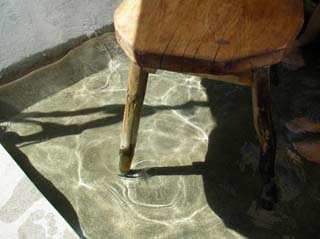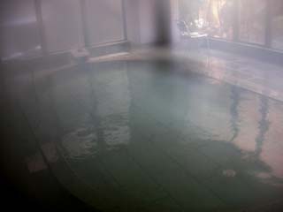 入口を入ると下足の棚があり、料金は150円で染髪料金100円という昔の銭湯のような料金で、券売機で150円の券を買って扉を開けて、窓口に券を出します。脱衣場は棚のロッカーが並んでいて、いくつか鍵がついています。浴室は一段低くなっていて、円形の湯舟に無色透明の熱い源泉が掛け流されていて、地元の人が利用しています。熱いので長く入っていられませんが、最後によく暖まって出ました。