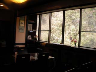 1時間ほど温泉に入って上がり、受付の横にある休憩室に行ってみると、窓側にカウンター席があり底倉温泉の谷が見えて、奥には1日コース用の座敷があります。しばらくお茶を飲んで休憩しました。底倉温泉は、歴史のある温泉で、日帰り入浴も歓迎のようです。- 旅行時期