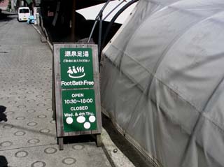 湯の里おかだの温泉に入った帰り、行きに通ったホテルおかだの8階にある足湯に寄ってみると、無色透明の温泉が掛流されていて、湯坂山から電波塔のある箱根の内輪山の双子山が見えていて、隣にある南風荘の最上階より上の高さです。足湯に入った後は、エレベータで1階に降りて、帰りのバスの時間まで土産物屋で、昆布茶の試飲をして待ちました。