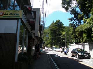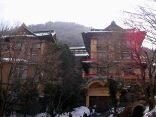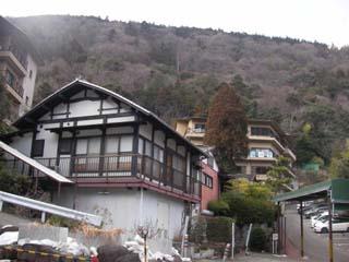 宮ノ下駅から坂を下っていき、国道1号線を進むと立派な富士屋ホテルの前を通り、国道138号線が分かれる宮ノ下交差点から坂道を上り、つたやの入り口の前に箱根温泉があり、階段を上ると大雪の後で境内に雪が積もっていて遠くからお参りしました。