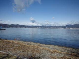 下諏訪駅で下車して、時間があるので諏訪市湖畔公園を歩いていくと晴れていて暖かで、近くの学生がトレーニングでランニングしています。