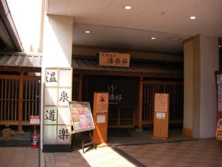 滝通りの橋を渡りホテルおかだの裏にある「湯の里おかだ」に向かう道に入ると楽々近道の看板があり、湯の里おかだへはこの先急坂で、ホテルおかだのエレベータを利用して行く方法が書かれていて、ホテルおかだの玄関を入りフロントの前を通ってエレベータに乗り8階で降りて廊下を進み、エスカレータでさらに上がって、非常口を兼ねた出口から坂を上ると日帰り入浴が中心の湯の里おかだに着きました。