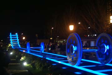 丸の内から東京駅前から皇居に続く東京ミチテラスの会場に行ってみると、レールの上に「1号機関車150形」「D51形」「EF60形」「新幹線E5系」の 車輪をモチーフにした「光の車輪」と「光のレールウェイ」がありますが、車輪の違いは一般に分からず、色が変わるだけなので地味な感じです。