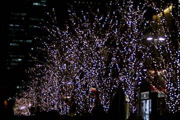 東京駅から東京ミチテラスの会場に向かう途中で、シャンパンゴールドのLEDが輝いていました。有楽町と大手町を結ぶ約1.2kmに及ぶ丸の内仲通り沿い続いていて、二月中旬まで開催していて、東京駅から歩いていけます。