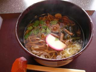 雪景色を見て待つと10分ほどで田舎そばが出来上がり、蒲鉾にわらびなどの山菜とえのきなどのキノコが乗っていて、地元のソバ粉を使った本格的な十割そばで、美味しくいただきました。- 旅行時期