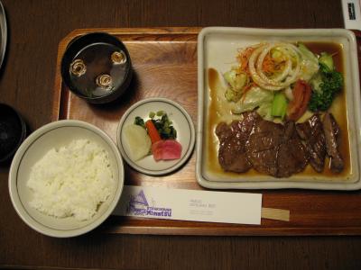 ビーフ薄切り定食(3,400円)を注文したのですが、お肉は、決して、薄切りじゃなかった!(ま、ステーキというほどの厚みではありませんでしたが・・・。)